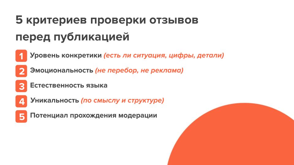 Мы внедрили внутреннюю «оценочную сетку» — 5 критериев, по которым проверяли каждый отзыв перед публикацией.