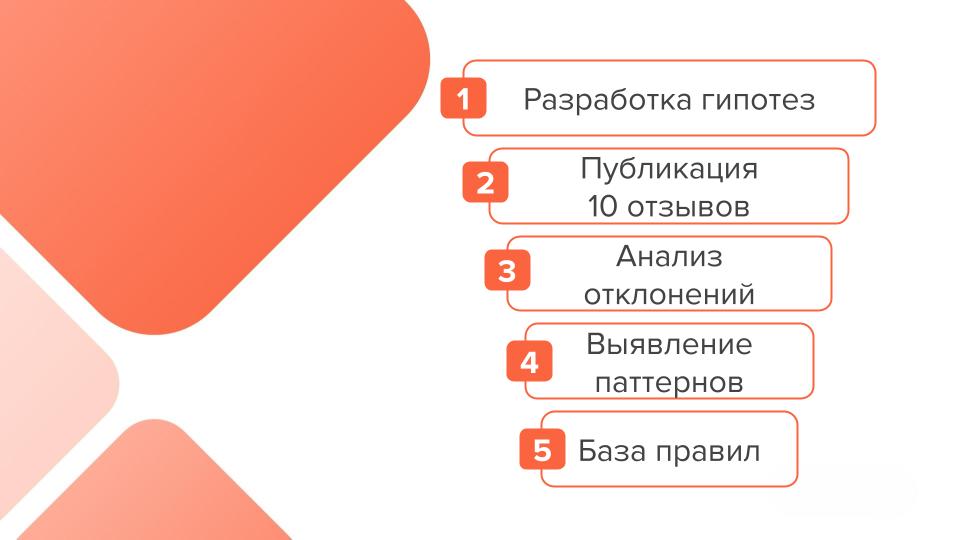 Учиться на отказах — каждая публикация давала обратную связь. Мы фиксировали причины отклонений, меняли формулировки и заносили удачные обороты в рабочую базу. А ещё анализировали зачтённые отзывы конкурентов, делали выводы и применяли их на практике.