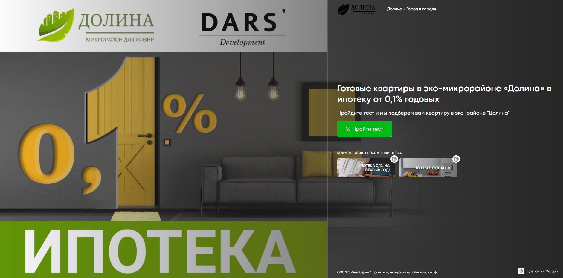 Мы изменили вопросы и обложку квиза. Для обложки взяли офферы с тех объявлений, по которым реклама собирала больше всего заявок: ежемесячный платёж и ипотека 0,1%.