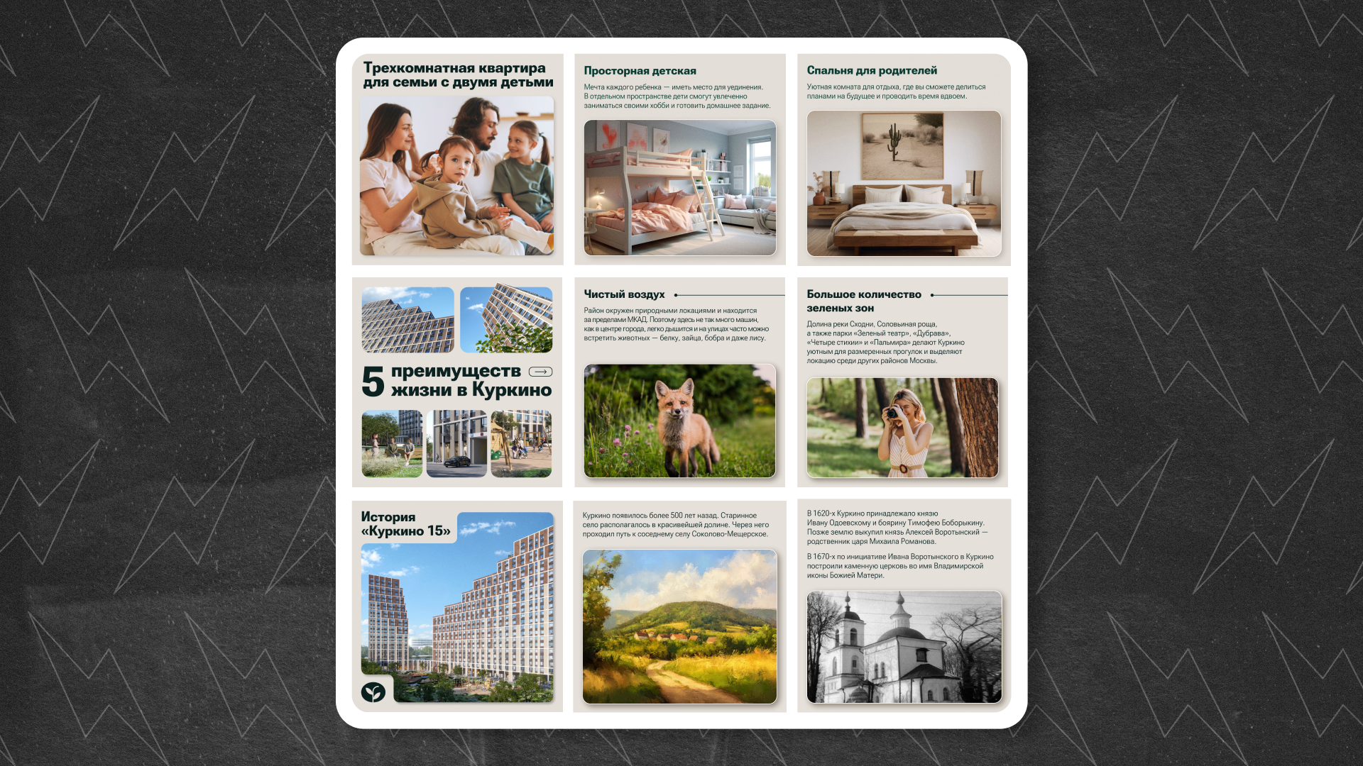 Мы отталкивались от логики будущего жителя, а не от количества визуалов, и построили контент так, чтобы показывать не только дом как объект, но и то, как будет организована повседневность вокруг него.