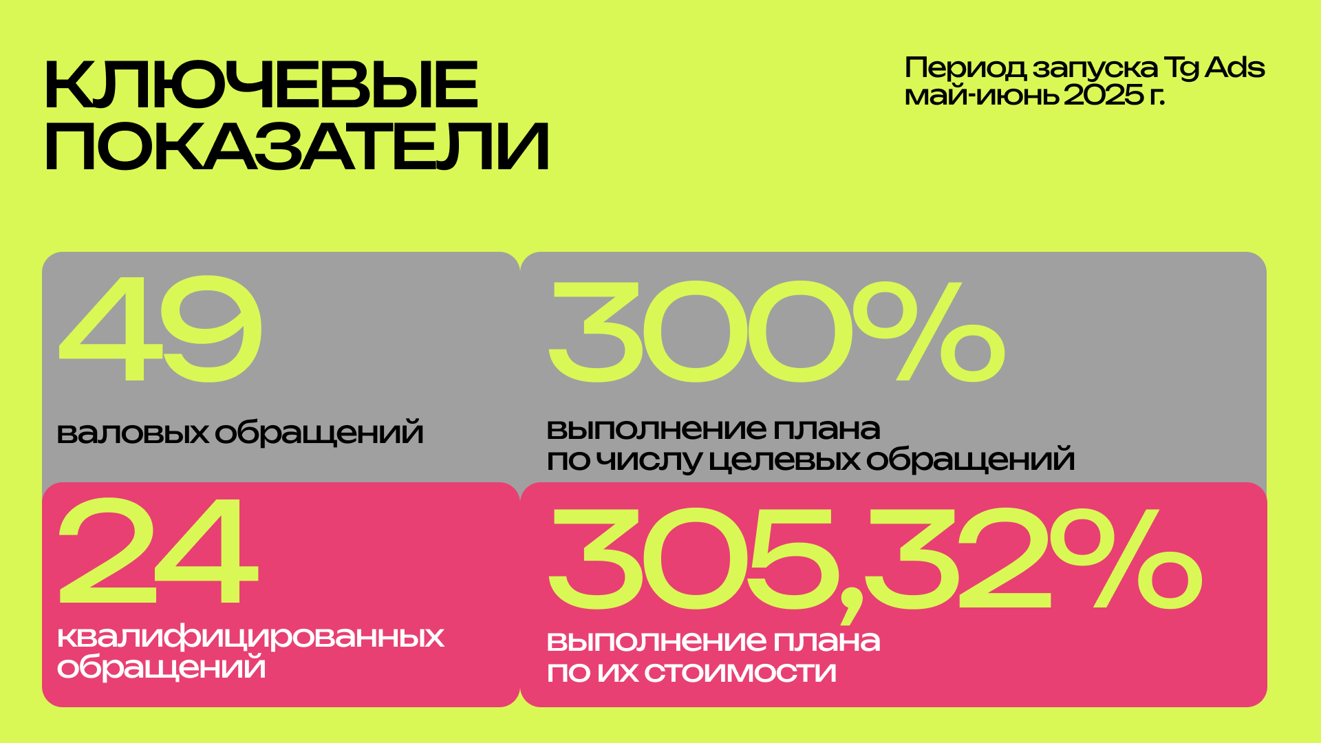 Благодаря постепенным запускам, которые помогли сфокусироваться на нужной аудитории, команда Telega.in смогла: