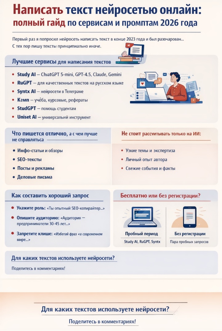 Написать текст нейросетью онлайн: полный гайд по сервисам и промптам 2026 года