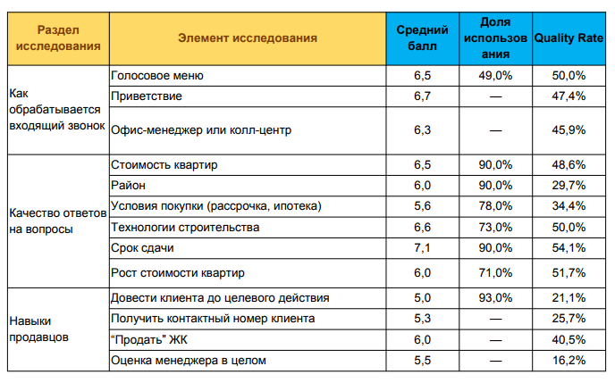 Голосовое меню использует 49% всех застройщиков, качество приветствия в среднем оценено на 6,7 балла.