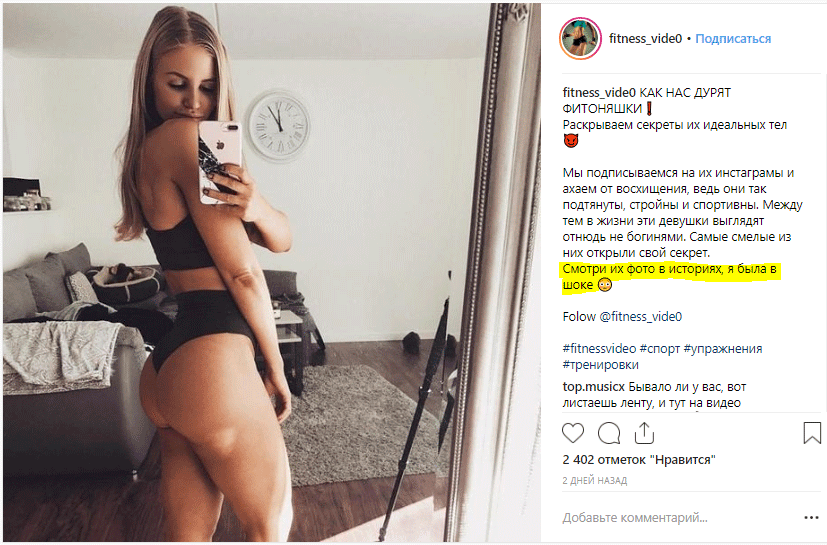 Здесь мы в карусель обычного поста добавили скрин с призывом заглянуть в истории (показали где они находятся и куда нажимать). Дополнительно после интерактива в описании сделали ещё один призыв и написали о чём эти истории.