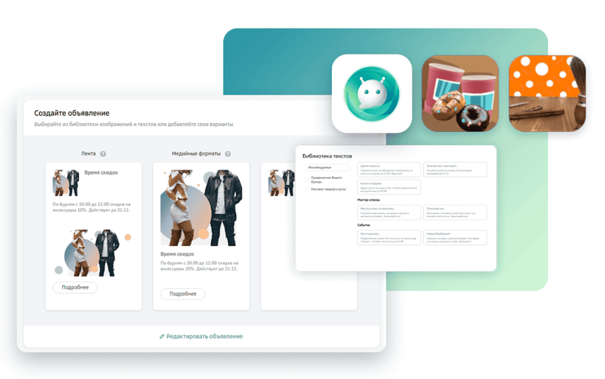 Российские сервисы для автоматизации маркетинга, например, такие как СберТаргет, Яндекс Бизнес, VK Реклама позволяют быстро создавать уникальный визуал для рекламы, а также экспериментировать с разными стилями и визуального оформления без привлечения значительных бюджетов на большой штат дизайнеров.