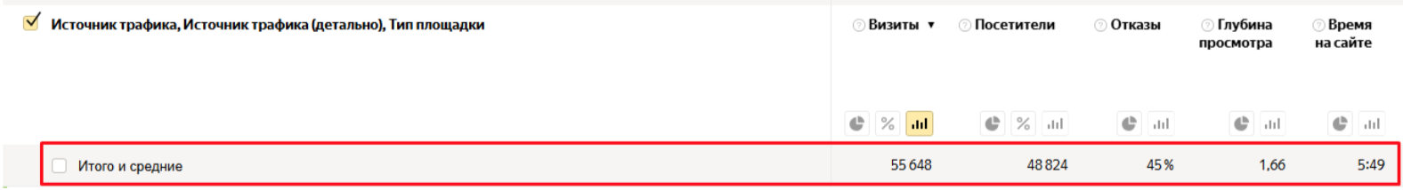 Из Метрики выгружаются агрегированные данные (такие же, как в отчётах в интерфейсе Метрики). Это значит, что над данными были проделаны определённые операции, в основном, арифметические: сложение, вычитание, умножение, деление. Благодаря этим операциям в отчётах мы видим обобщённые показатели «Итого и средние»: