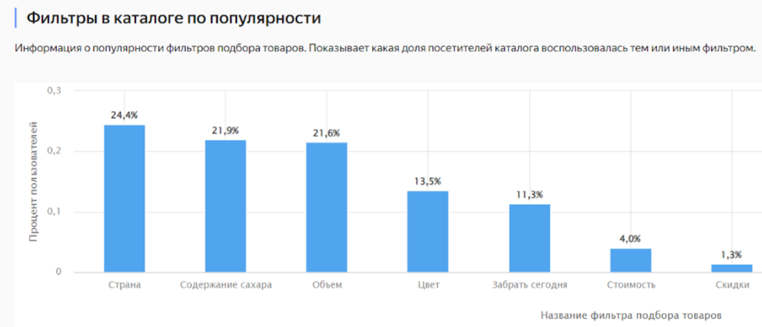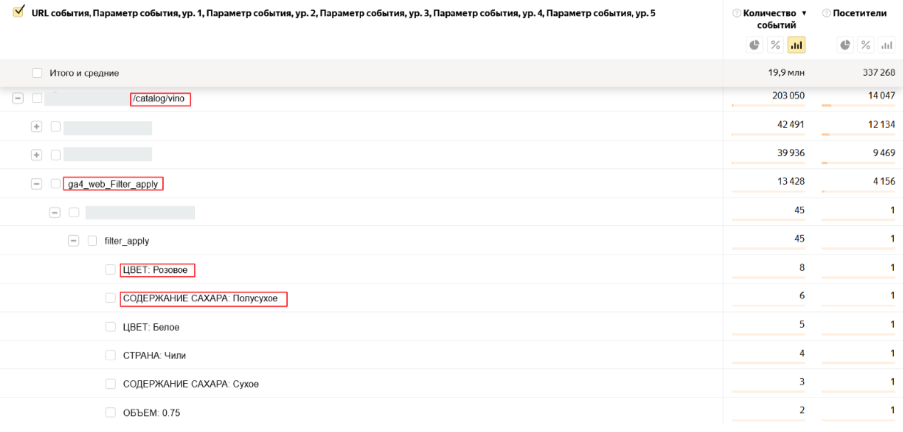 - по каким параметрам посетители чаще всего фильтруют товары (данные по винному каталогу):