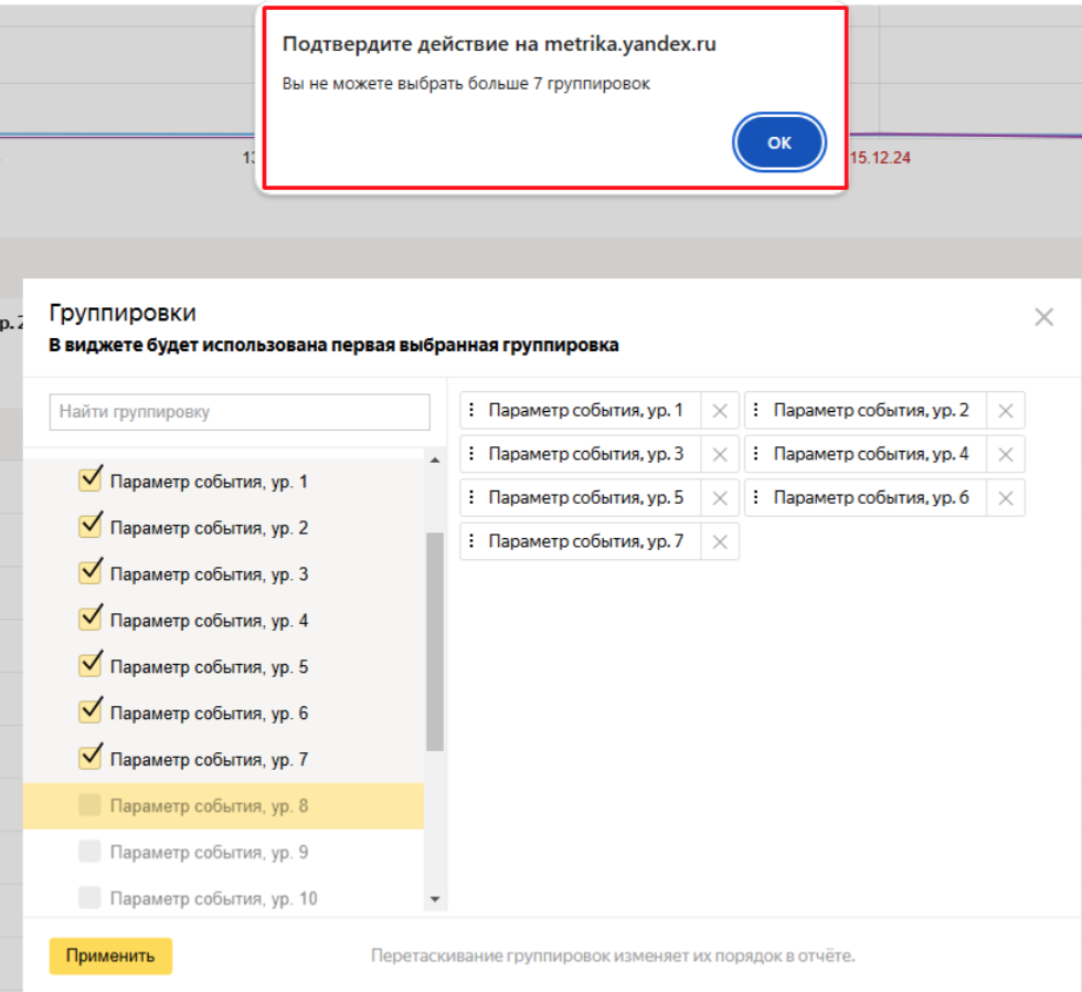 Для группировки данных нельзя одновременно выбрать больше семи параметров, а ведь для передачи данных нам доступно до десяти уровней вложенности (возможно, столько никогда и не пригодится, но если такое случится, в отчёте мы не сможем раскрыть их все):