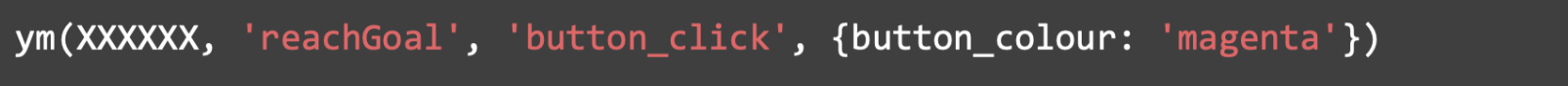 2. reachGoal — метод для передачи информации о достижении Javascript-цели. Параметры указываются после идентификатора цели, например:
