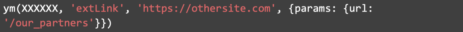 5. extLink — метод для передачи информации о переходе по внешней ссылке. Для параметров в методе есть необязательное поле ‘params’, которое указывается после адреса внешней страницы. Например:
