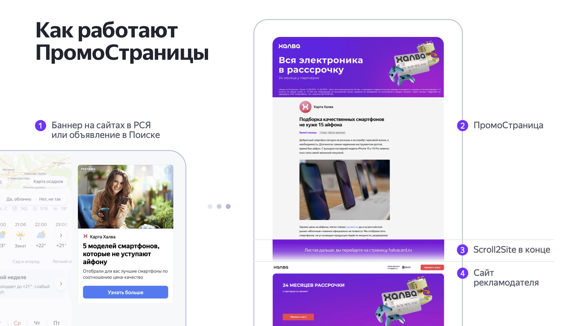 ПромоСтраницы — это сервис Яндекса для создания и размещения рекламных статей, которые отвечают на ключевые запросы и «боли» бизнес-заказчиков. Статьи на ПромоСтраницах размещаются в РСЯ (Рекламная сеть Яндекса) и на поиске Яндекса, где органично дополняют SEO-продвижение. Контент появляется в топе поисковой выдачи без рекламной маркировки. Пользователи сразу получают релевантную информацию без дополнительных шагов.