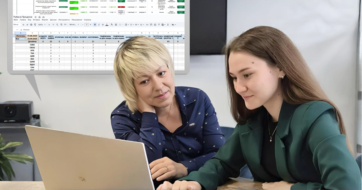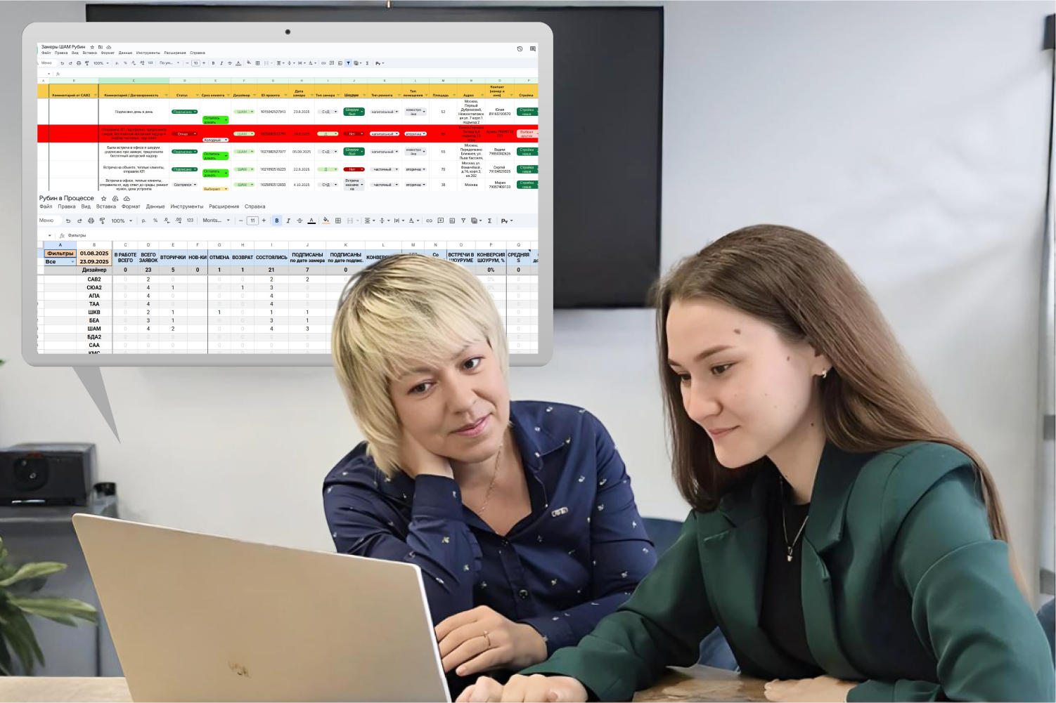 2. Конверсия отдела продаж. Все встречи, звонки и этапы сделок — в цифру. Теперь мы видим не «плохо работает менеджер Вася», а «у Васи проседает конверсия на этапе коммерческого предложения, ему нужна точечная помощь». Или не «клиент слился, не хочет встречаться», а «конкретная клиент Елена уезжает в отпуск, ей сейчас немного не до того и сомневается, сможет ли начать дизайн-проект удалённо».