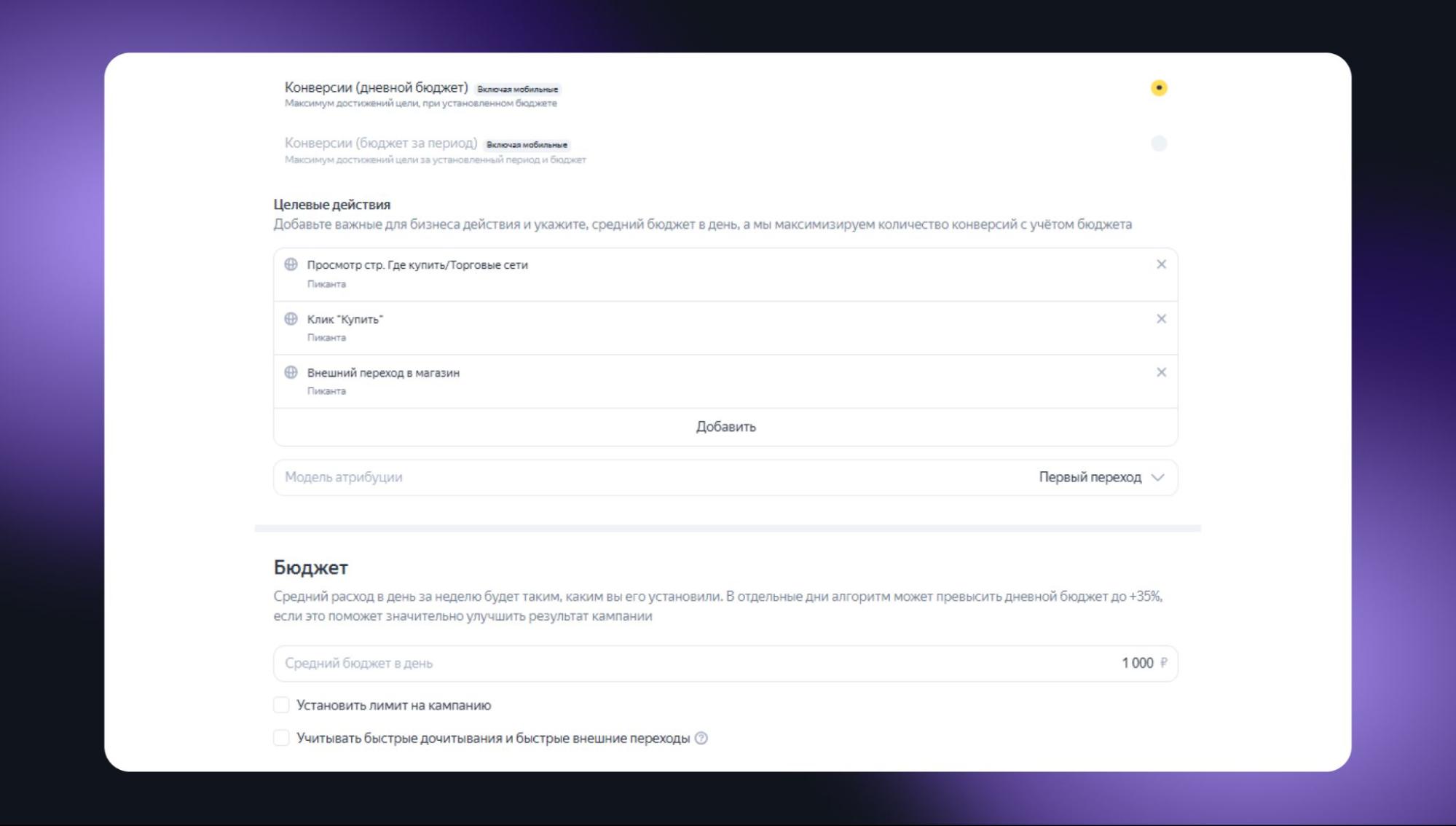 И наконец, вишенка на торте — обучение алгоритма на конверсии. Когда собрали достаточно данных, мы подключили самую умную стратегию. Мы сказали Яндексу: «Приводи нам не просто читателей. Приводи тех, кто с наибольшей вероятностью кликнет на кнопку „Где купить“». Это критически важный сигнал для