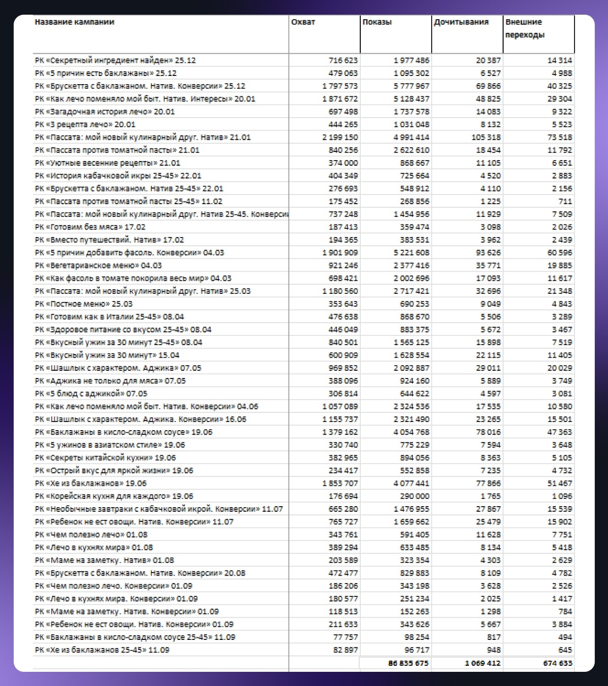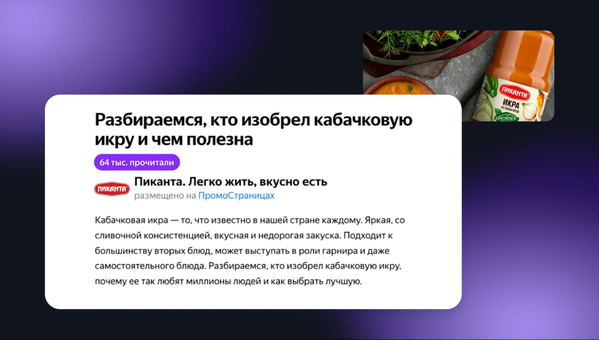 Разнообразие подходов к созданию контента и следование позиционированию бренда позволили гармонично вписать ПромоСтраницы в общую стратегию продвижения продуктов «Пиканта», обеспечив внушительное число качественных касаний с потенциальными покупателями. Но подробнее о результатах расскажет мой коллега — Тимур Угулава.