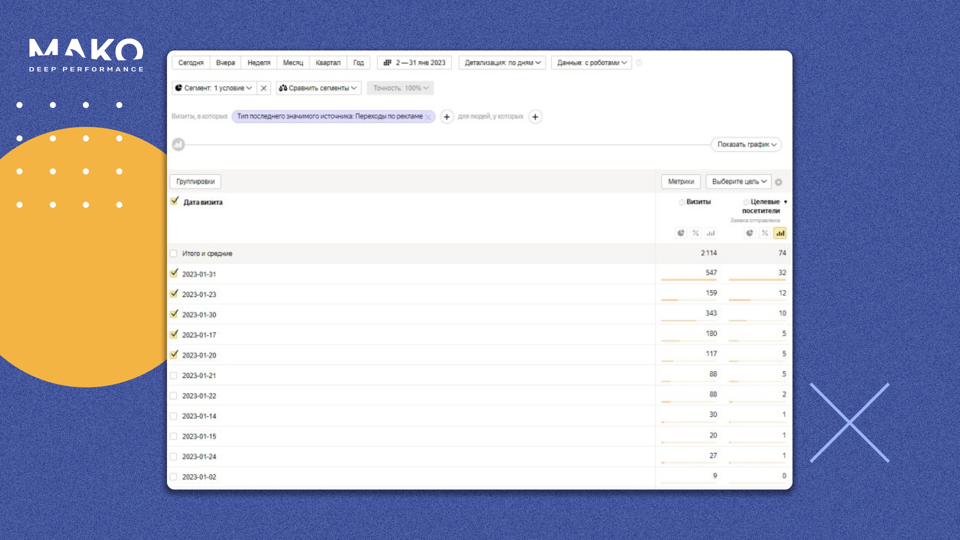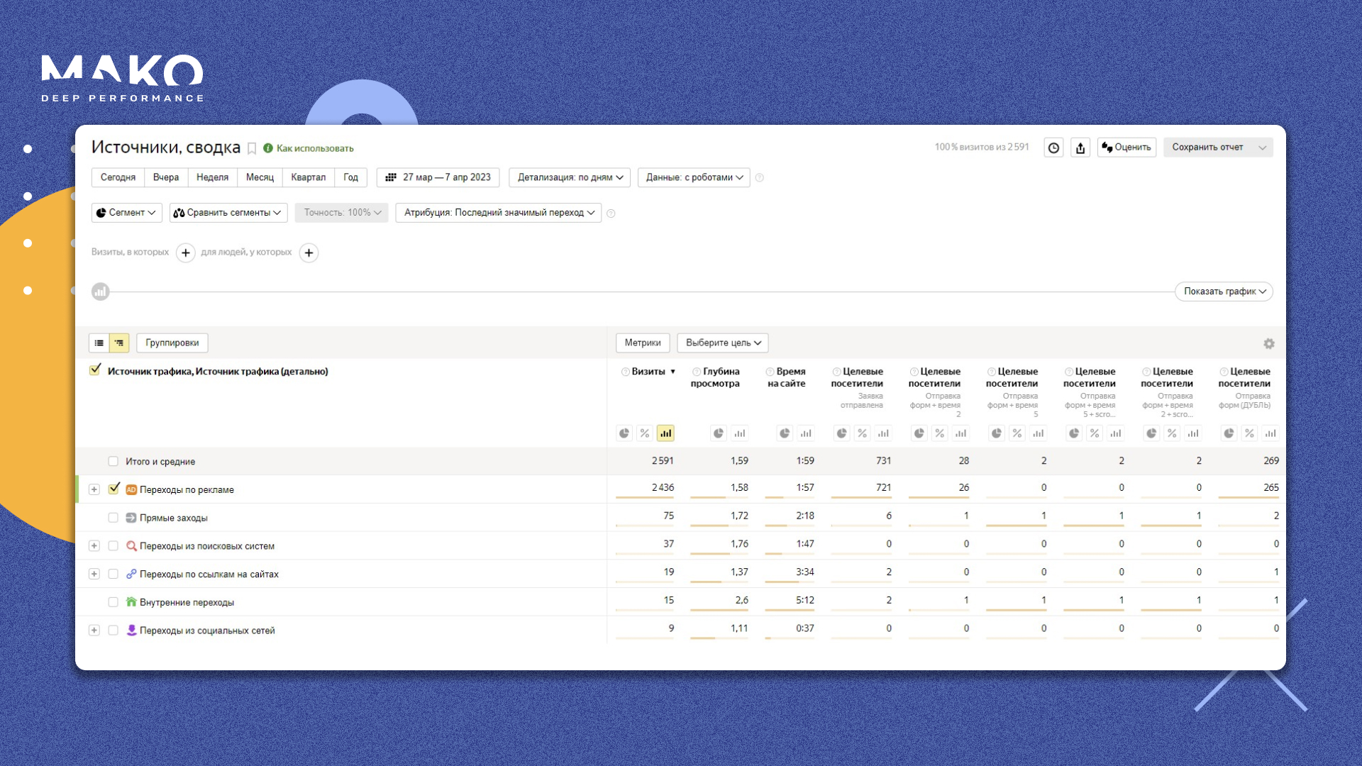 Несмотря на то, что атака фрода продолжается и десятки зловредных конверсий ежедневно бомбардируют сайт makodigital, наша аналитика выравнивается и рекламные кампании постепенно обучаются на качественных, вовлечённых пользователях. Чего и вам желаем!