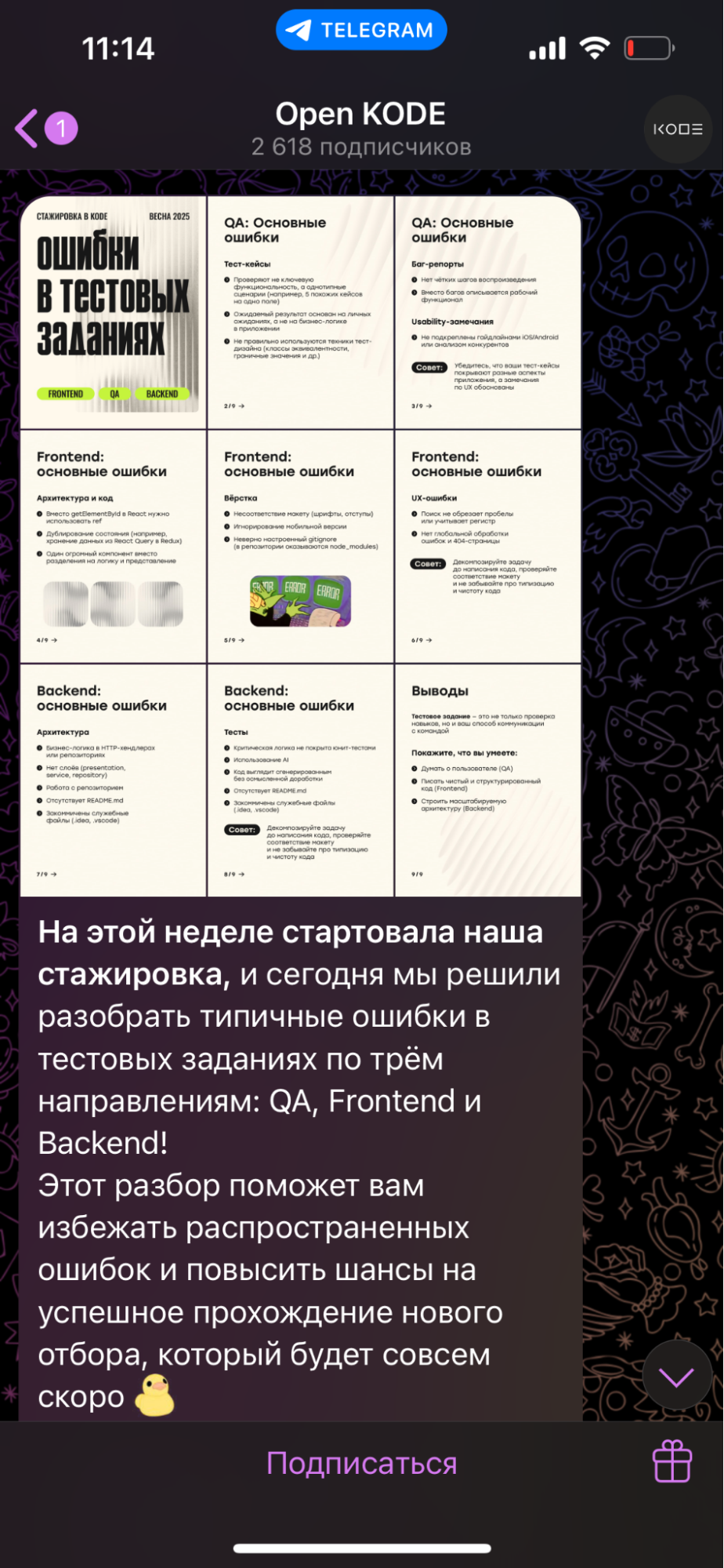 Эти истории помогли снять напряжение у новых кандидатов: мы заметили, что чаще всего тестовые не делают не из-за сложности заданий, а из-за внутренних барьеров. Максим показал, что такие страхи нормальны — и что их можно пройти.