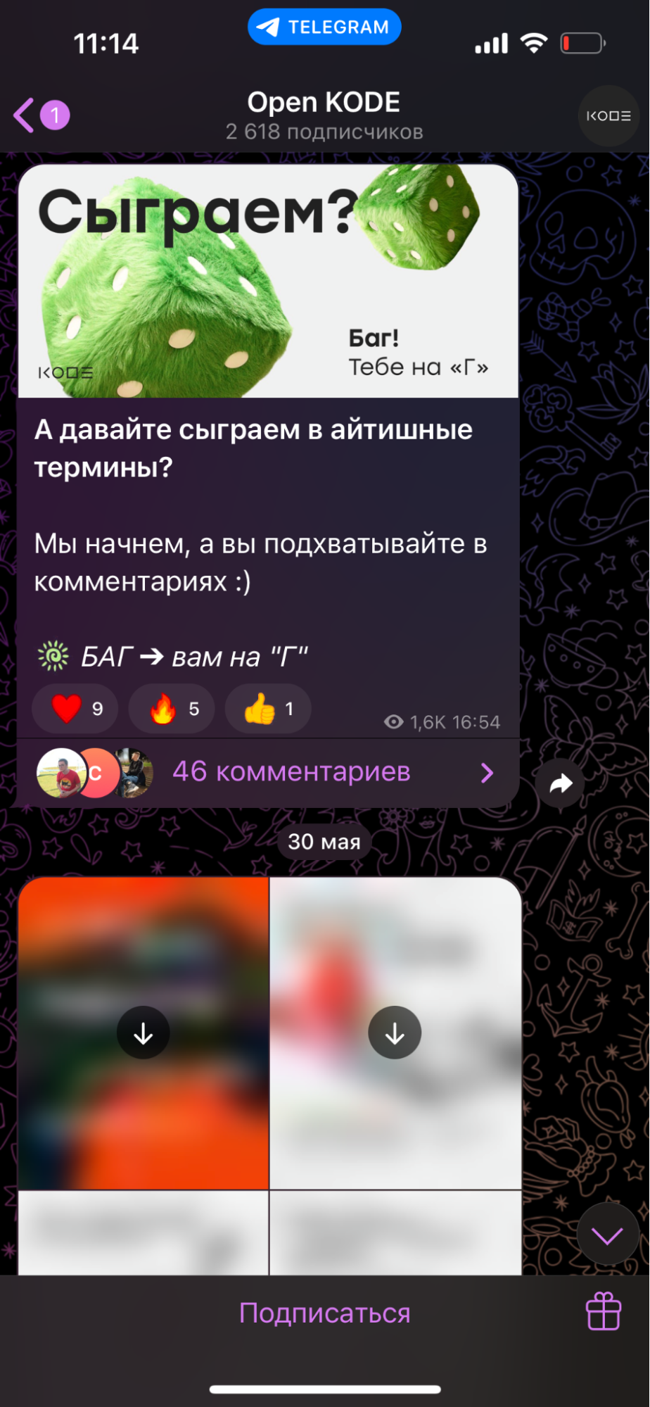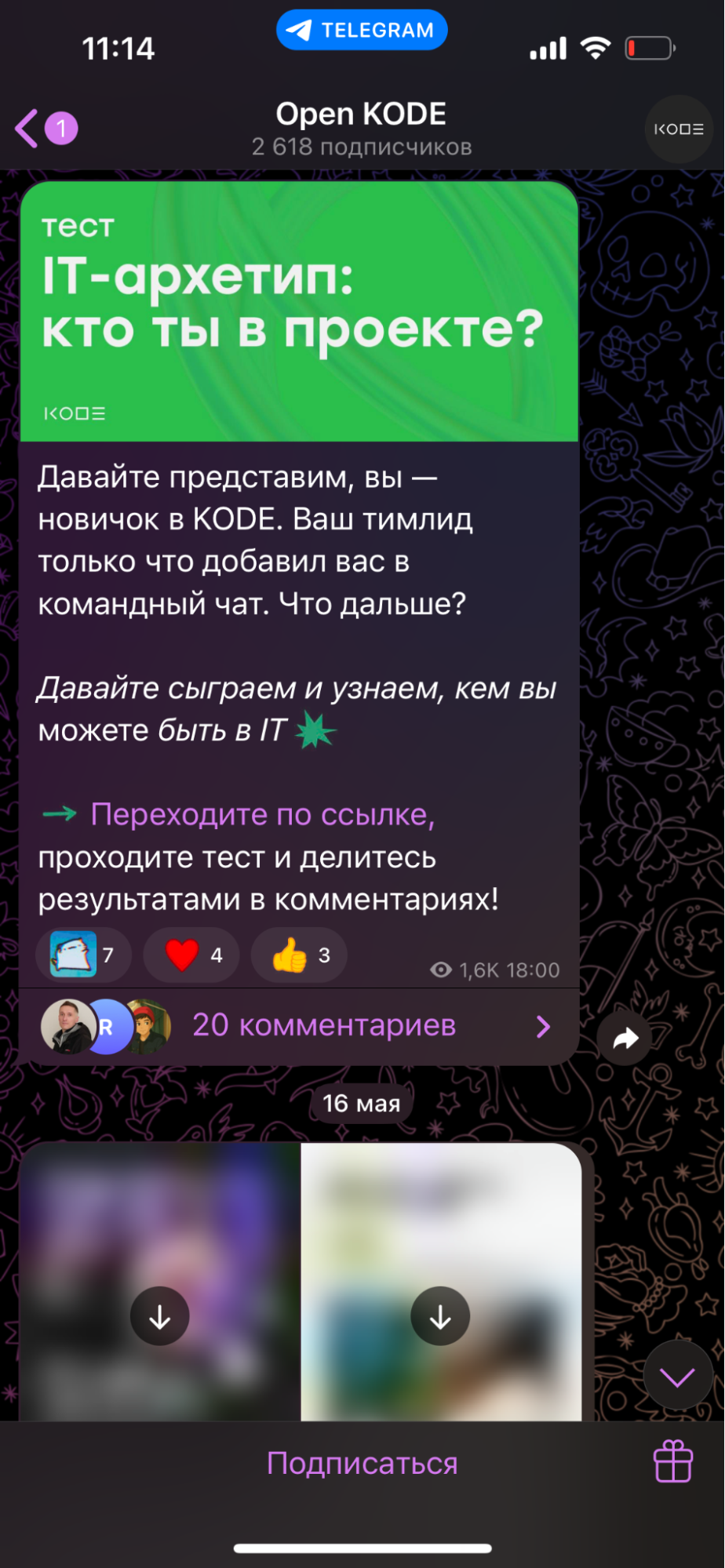 Мы хотели создать комьюнити, которое обменивается знаниями, помогает друг другу в пет-проектах. Для этого делали посты с механиками вовлечения: предлагали пройти квиз на определение IT-архетипа или установить фон в стиле майнкрафта в Zoom. Это сработало: сейчас в чате сотни активных участников, и десятки сообщений в день.