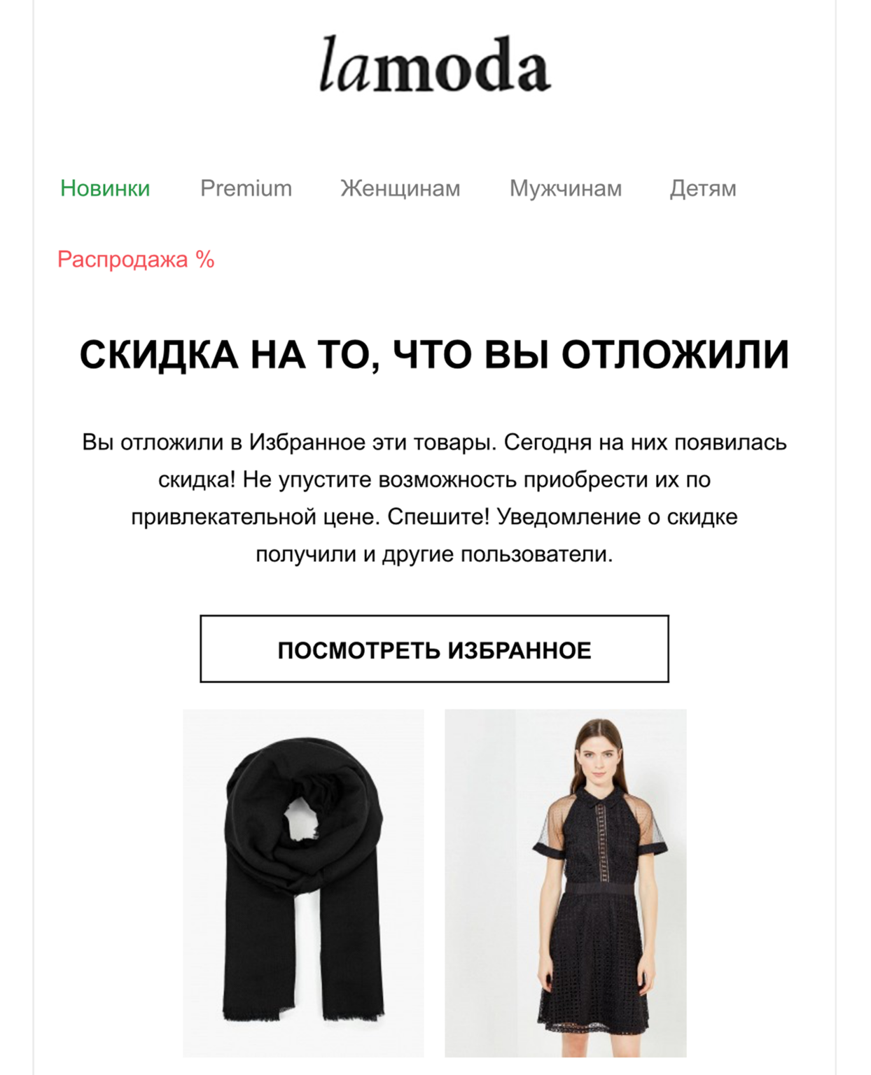 Напоминания. О брошенной корзине, после просмотра товара, после появления скидки на востребованный у пользователя товар, после возвращения товара в наличие.
