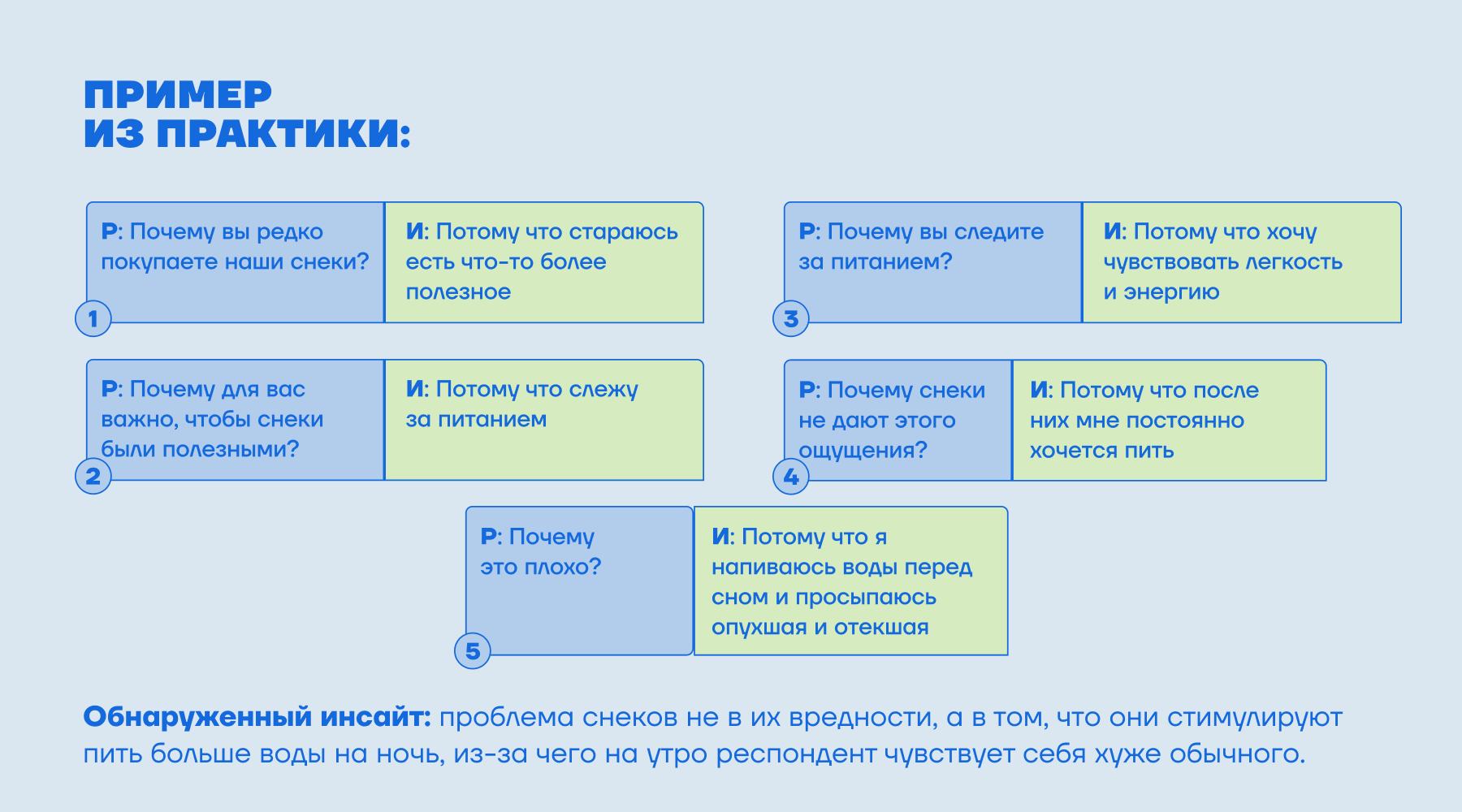 Если вы разрабатываете коммуникацию для бренда снеков, то, возможно, вопрос звучит так: «В каких ситуациях и как покупатели выбирают снеки?».