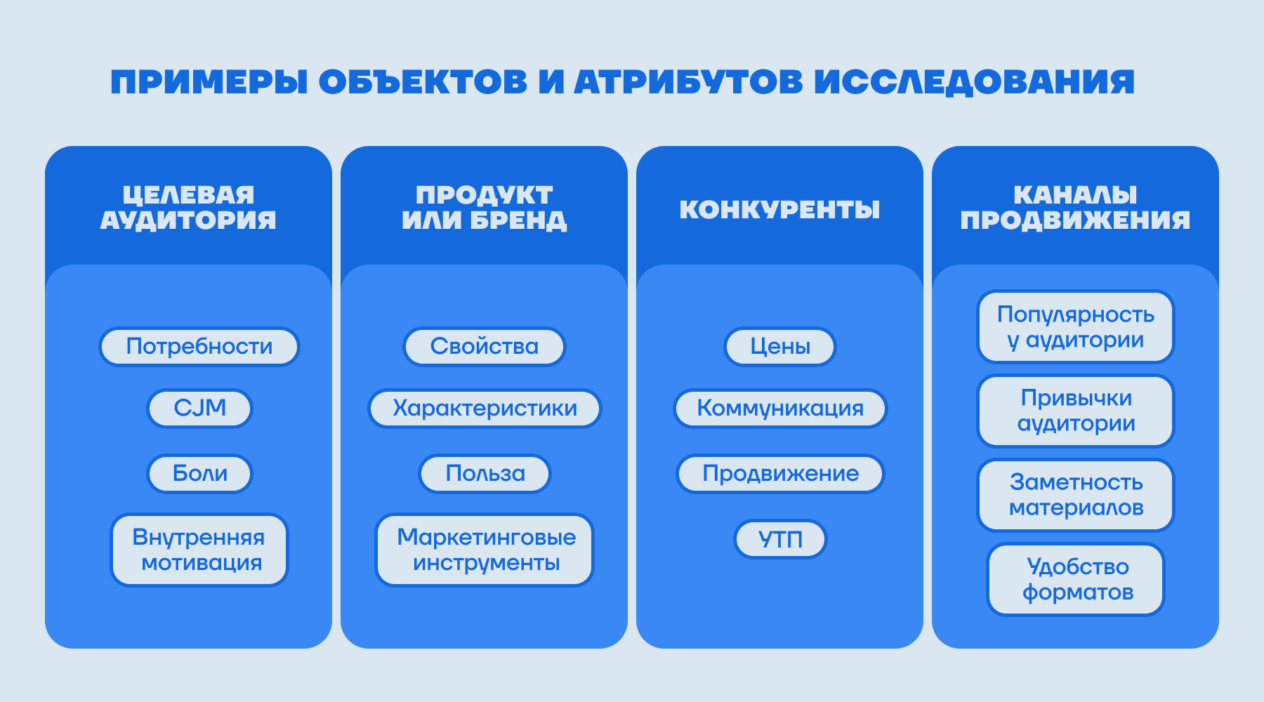 Ключевой вопрос задаёт тон всему исследованию и помогает разложить его на более мелкие детали: объекты исследования и атрибуты.