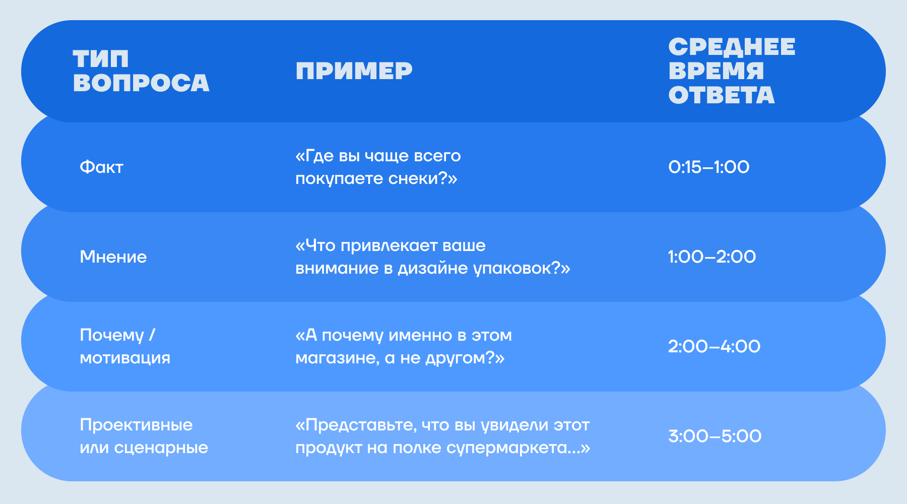 Мы подготовили таблицу, которая поможет понять, сколько времени примерно уходит на разные типы вопросов.