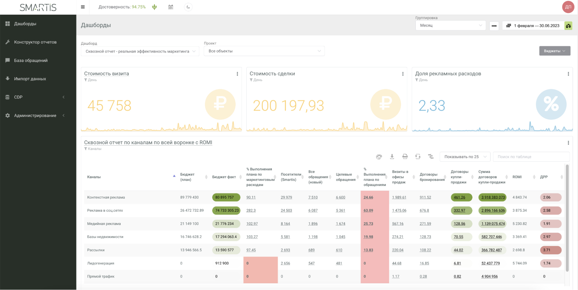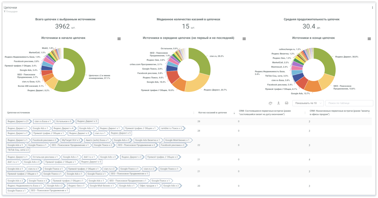 Затем на рынок пришли решения, позволяющие отслеживать эффективность каналов: откуда лид, сколько это стоило, какое объявление сработало. Появились связки разных касаний (сессий и звонков) с рекламой и быстрыми покупками, их фиксация вплоть до офлайн-конверсии, например, до этапа визита в офис застройщика, бронирования и сделки.