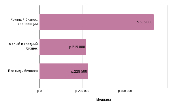 Медианная стоимость контента в зависимости от размера бизнеса заказчика