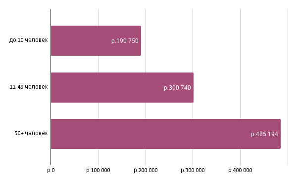 2. Чем больше сотрудников, тем дороже стоимость услуг. Средняя стоимость типового набора услуг в агентствах со штатом до 10 человек — 190 750 рублей, в средних агентствах со штатом до 50 человек — 300 740 рублей, в крупных агентствах со штатом более 50 человек за тот же набор услуг вы заплатите почти полмиллиона.