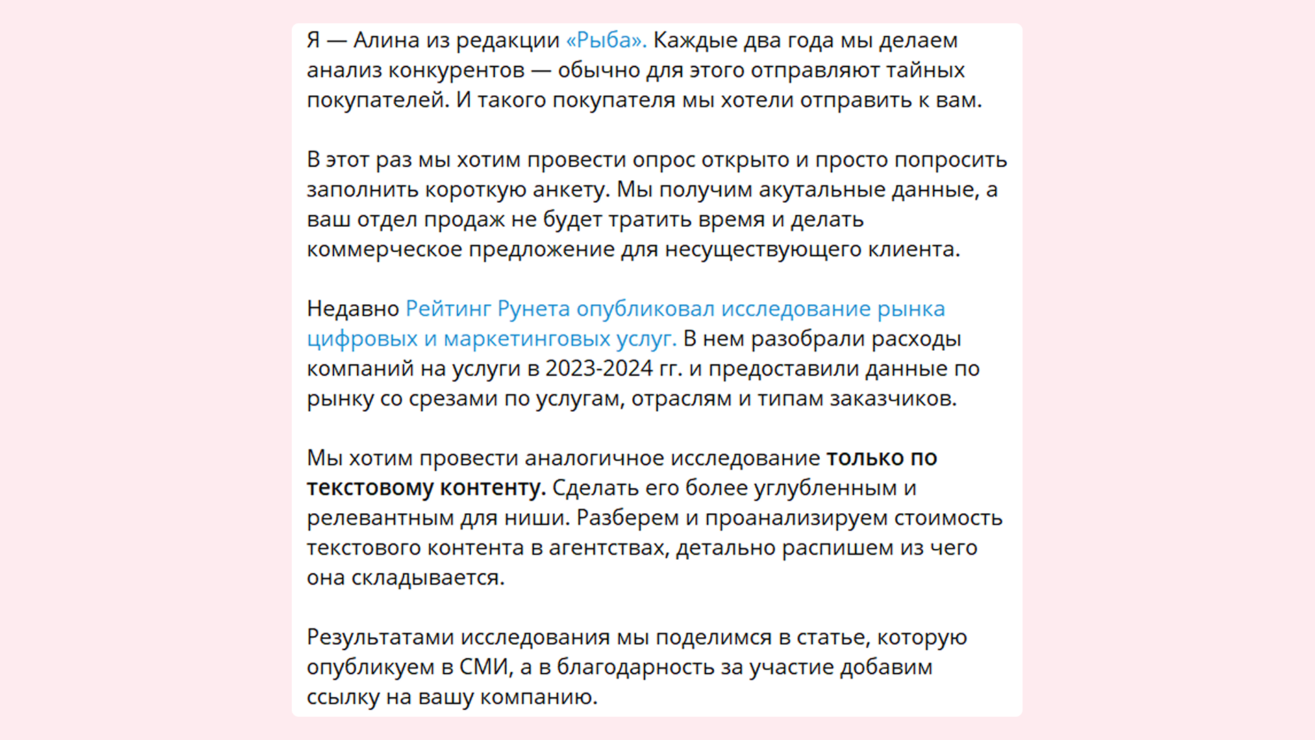 Такое письмо мы отправляли потенциальным участникам исследования