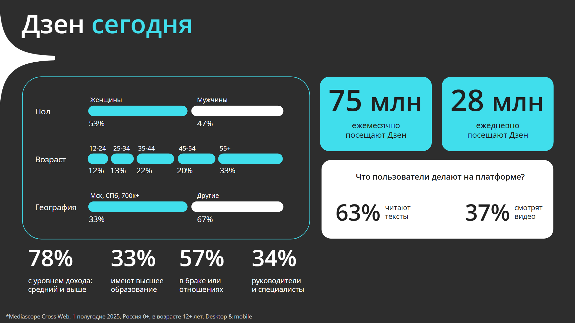 Где найти 75 миллионов клиентов? В Дзене! Именно столько людей ежемесячно читает статьи и смотрит видео на платформе. Среди этих людей точно есть ваши клиенты и сегодня мы расскажем, как попасть в их ленты. Если вы искали понятное объяснение, как использовать Дзен в 2026 — это оно.