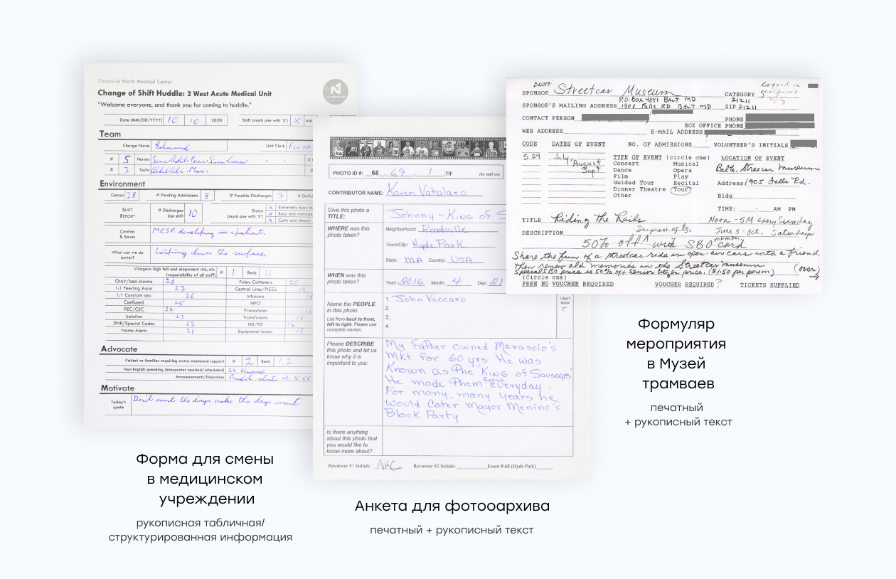Плюс, рукописные документы сами по себе часто очень разные: таблицы «уезжают», строки пересекаются с рамками, структура нарушена. Это ещё сильнее усложняло автоматизацию.