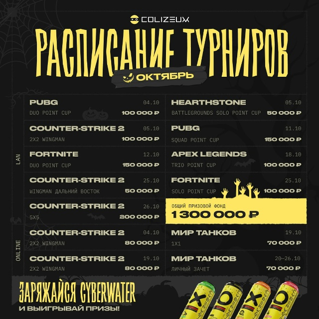 Расписание турниров с призовым фондом на месяц