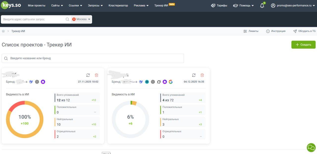 Именно по ним сервисы проверяют, попадает ли бренд в ответы нейросетей.