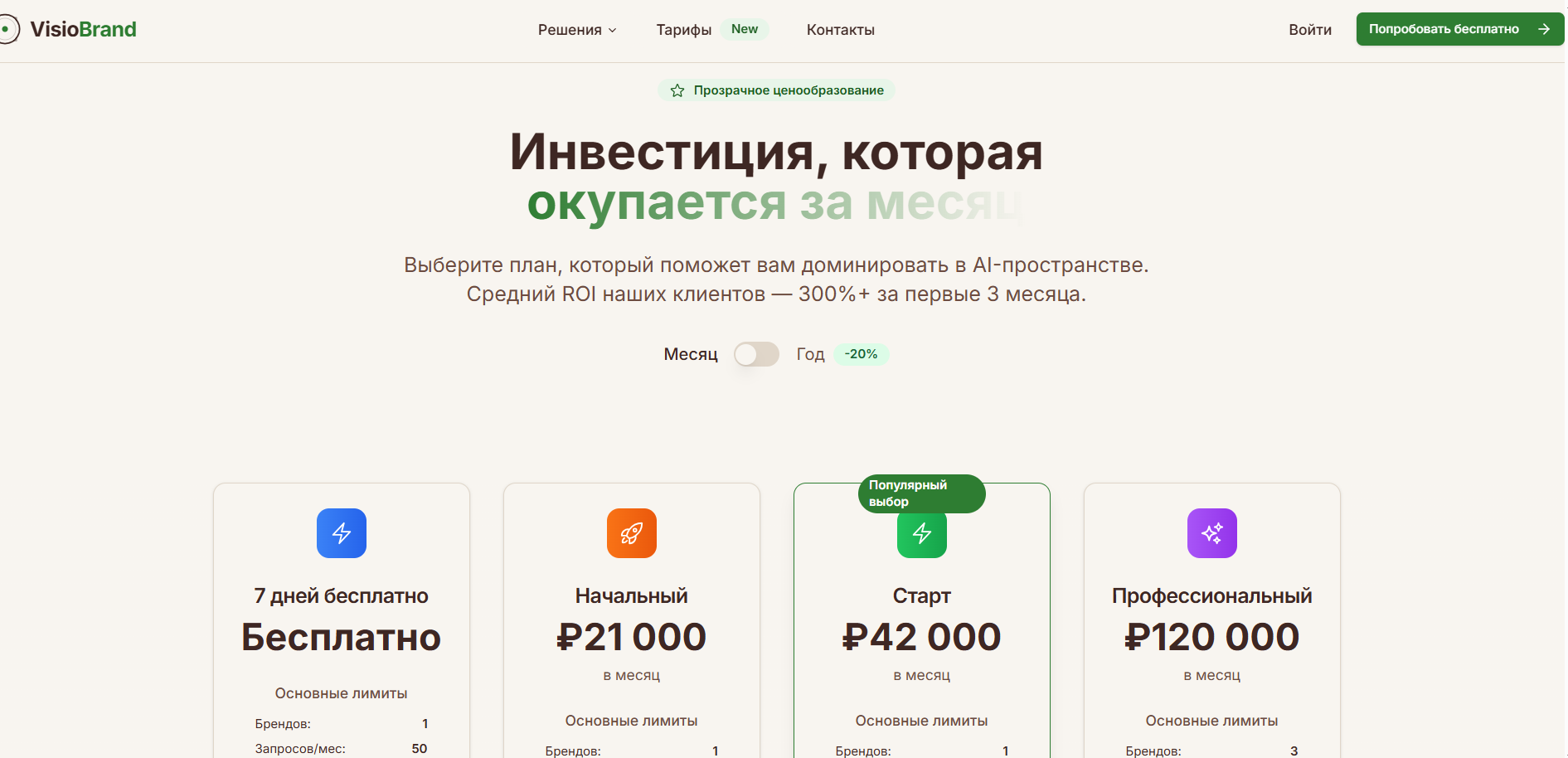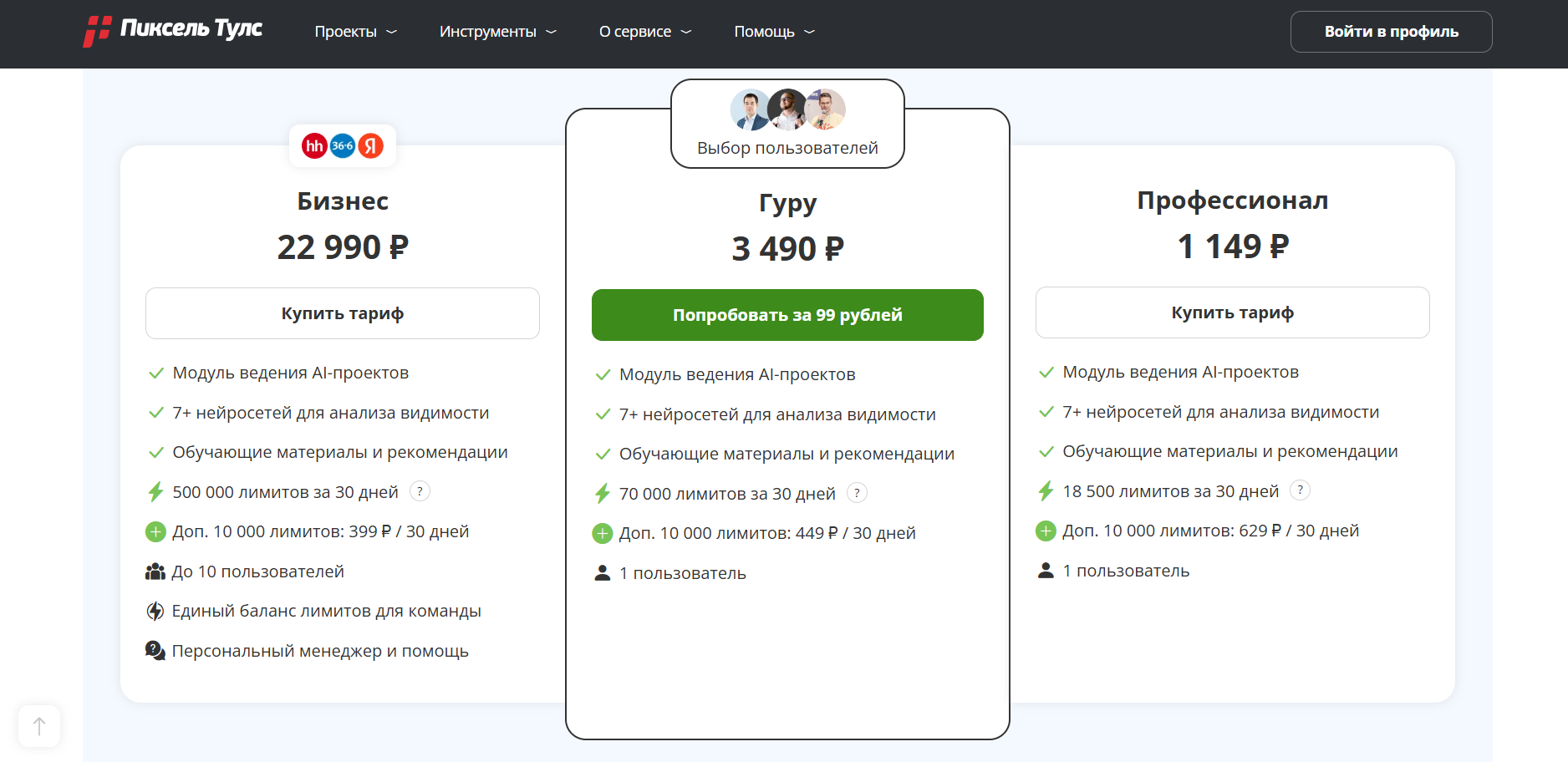 Ценовая сетка более гибкая: можно войти с небольших тарифов и масштабироваться. Стоимость оправдана, если использовать сервис именно как инструмент анализа внутрянки AI-ответов. Если не понимать, как связать это с результатом — цена чуть прикусит.