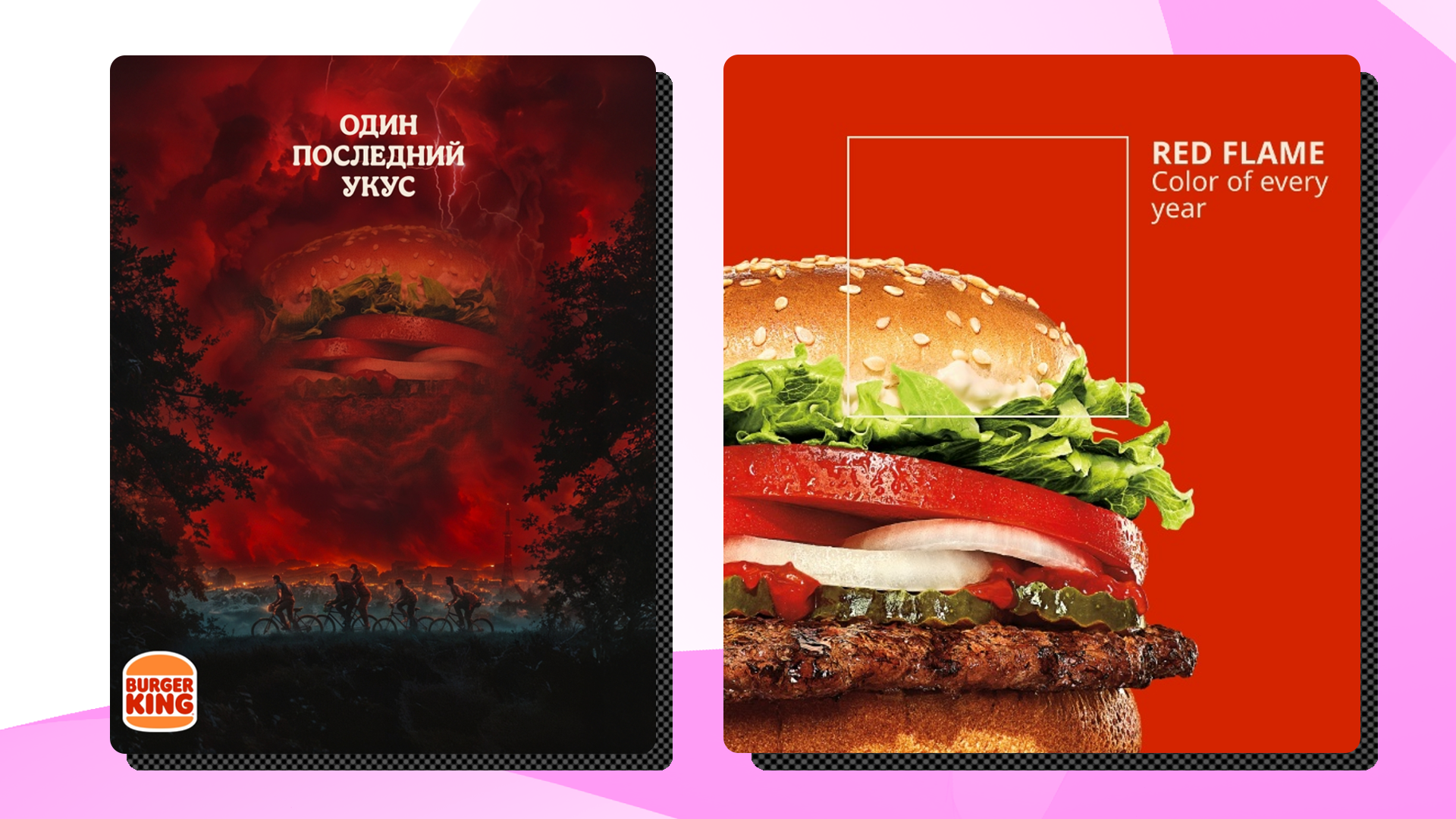 Пока все бренды адаптировали новый цвет Pantone под новый тренд, Burger King остался верен себе. Узнаваемо и иронично.