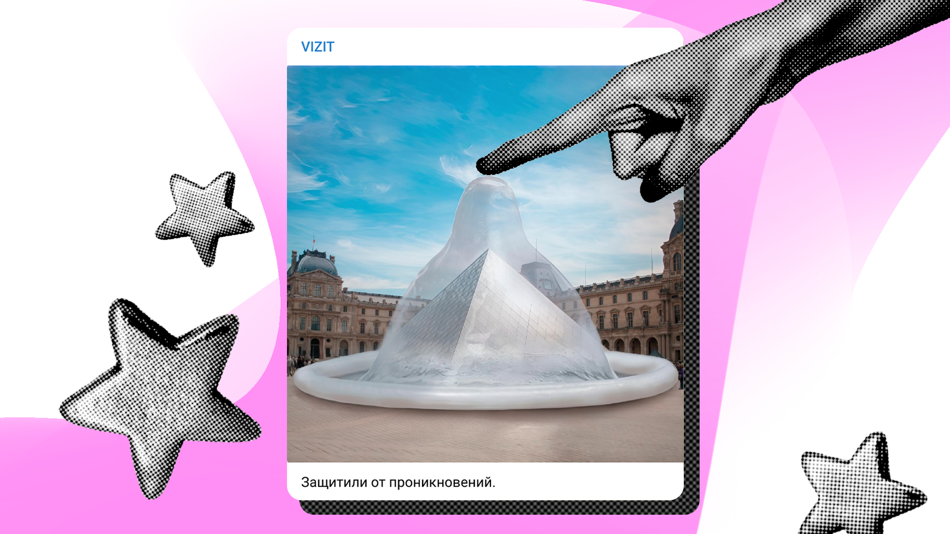 Самое ценное всегда должно быть под защитой — наверно, это главный инсайт бренда в целом. И какая удача: ситуатив с ограблением Лувра прекрасно зашёл в чат, а креаторы VIZIT лишь добавили «своего» смысла без похабности 80 lvl.