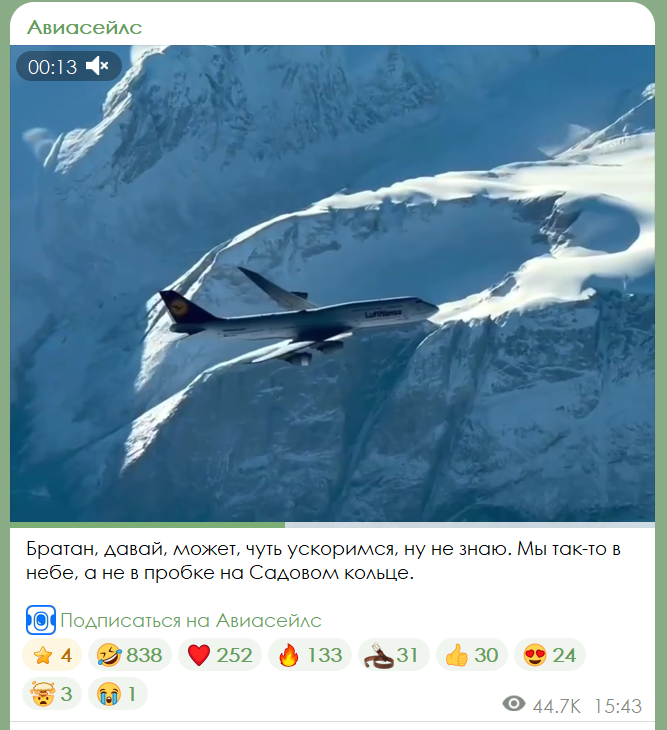 Королями этого направления по праву считаются те же Aviasales. Они не пытаются продать билеты в каждом посте, они комментируют реальность.
