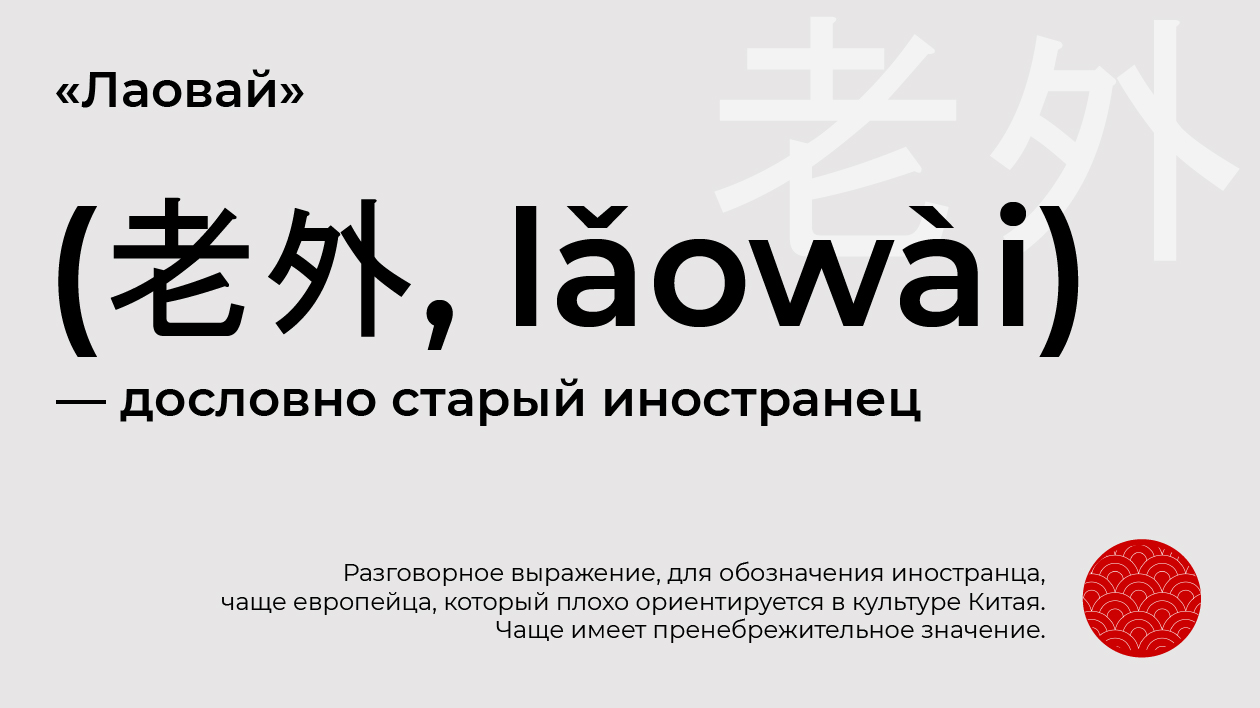 Кроме того, важно иметь в виду, что в Китае вы всегда будете «лаовай». Это слово может использоваться как в нейтральном значении «иностранец», так и в пренебрежительном и даже оскорбительном смысле.