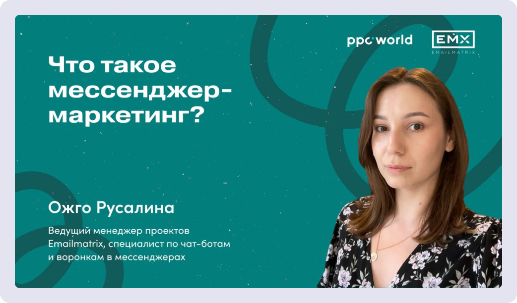 Например, ведущий менеджер проектов Русалина Ожго совместно с порталом ppc.world подготовила обучающий видеокурс по мессенджер-маркетингу. Русалина выступила как эксперт, а сам курс вышел на платформе партнёра — это классический пример контентной коллаборации, когда обе стороны усиливают друг друга.