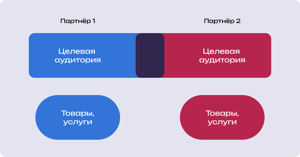 Чтобы партнёры получали новых клиентов, охваты и узнаваемость, не конкурируя за продажи, им важно соблюдать два условия: следить, чтобы целевые аудитории были сходными, а продукты и услуги — разными.