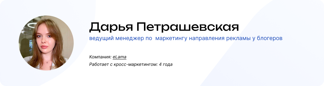 Представитель: Дарья Петрашевская, ведущий менеджер по маркетингу направления рекламы у блогеров.