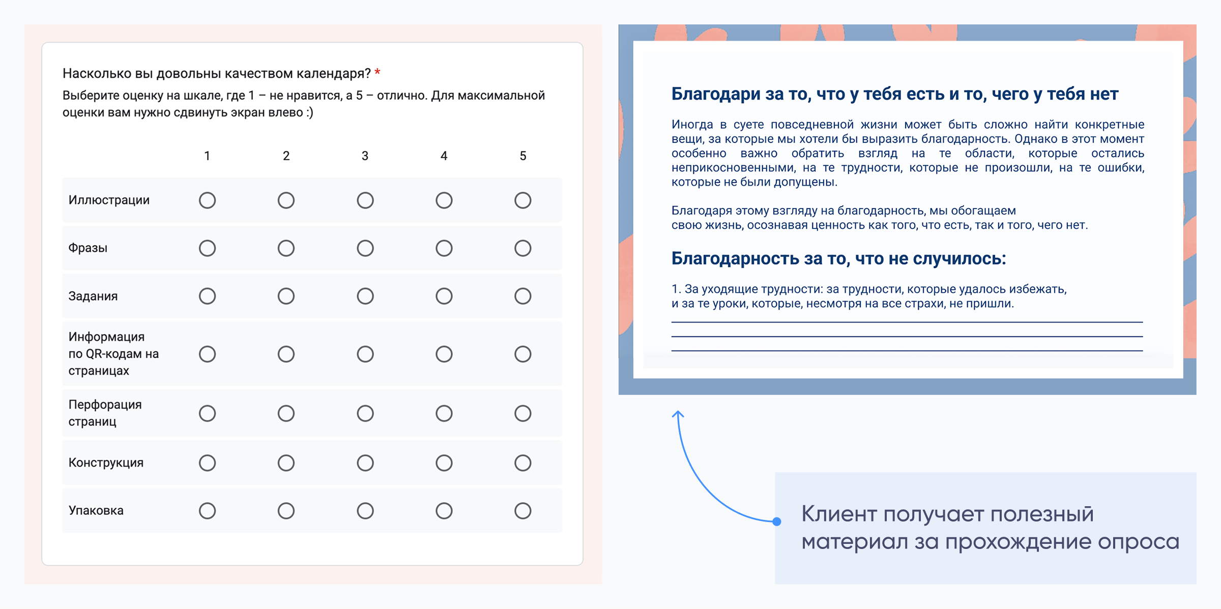 Если клиент готов поделиться подробным отзывом, ему предлагают пройти опрос. Анкету отправляют на почту, а за её заполнение клиент получает подарок — полезные материалы в стилистике бренда. Касания после заказа помогли Yearee увеличить повторные покупки на 35%, а индекс лояльности клиентов держится на уровне 9,4 из 10.