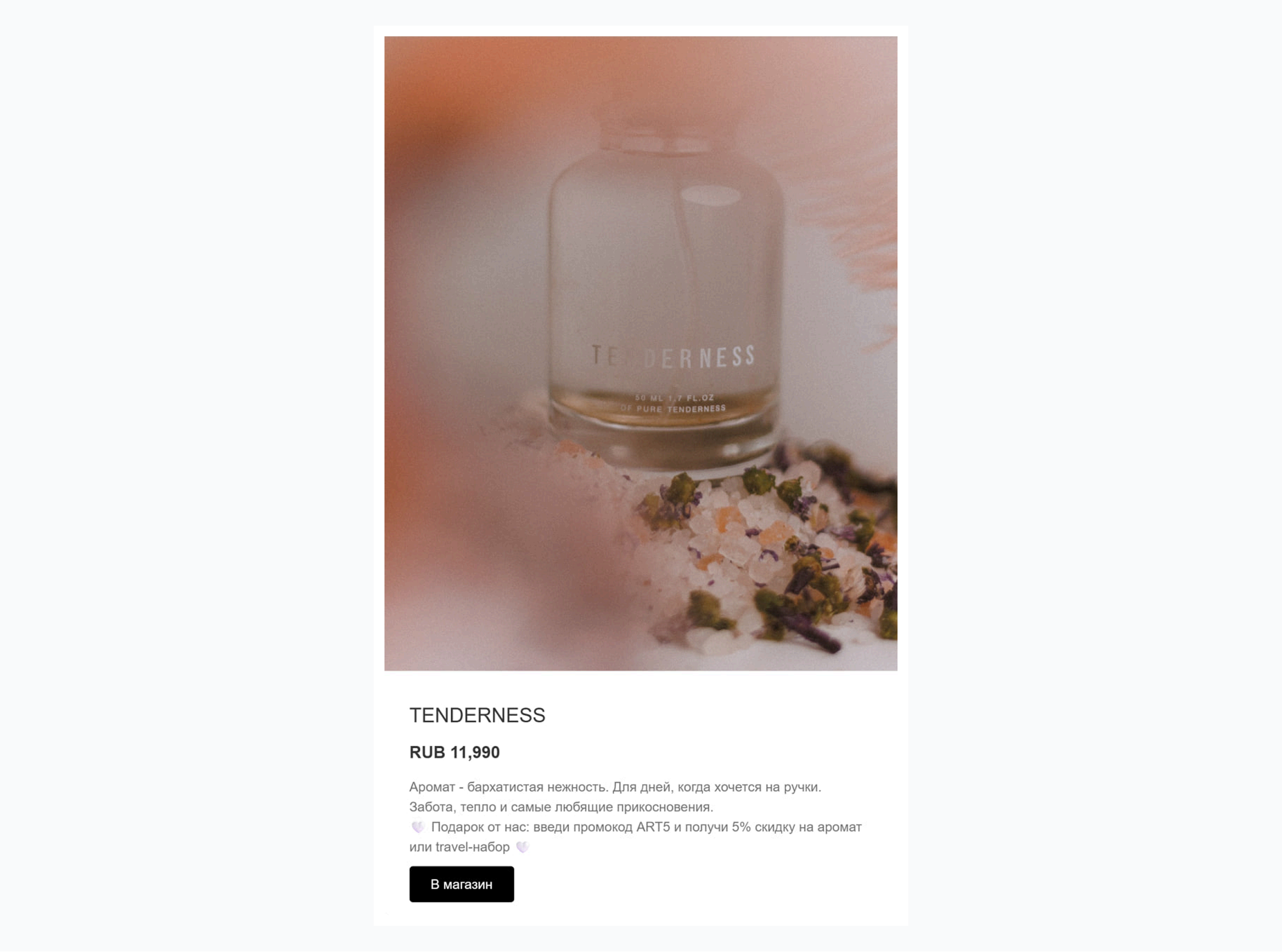 Такие рассылки помогают предложить релевантный продукт клиентам, которые уже проявляли интерес к определённым ароматам