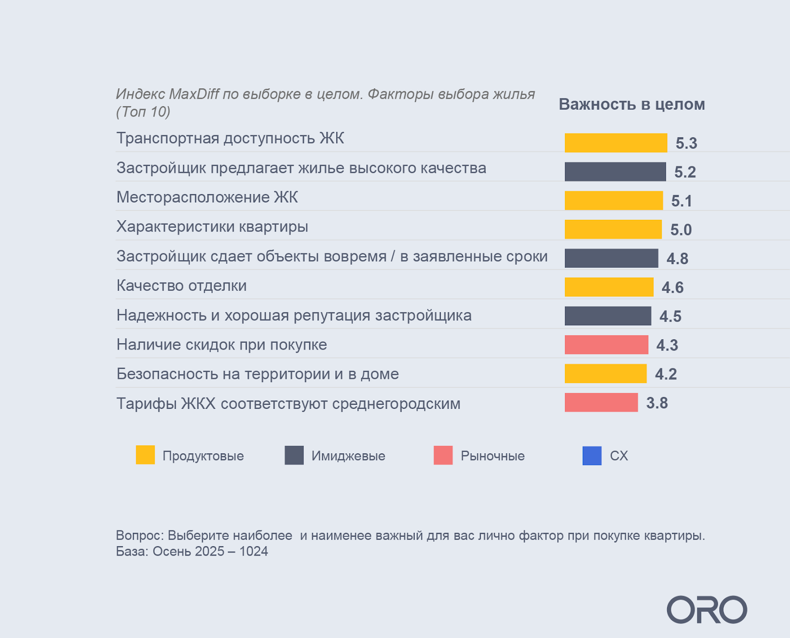 Из последней волны нашими совместными с девелоперами усилиями мы выяснили наиболее значимые факторы (кроме цены), по которым люди сегодня выбирают квартиру. Это даёт застройщикам понятную опору для коммуникации: позволяет смещать фокус с абстрактных преимуществ на те характеристики продукта и среды, которые влияют на выбор и формируют ценность в глазах покупателя.