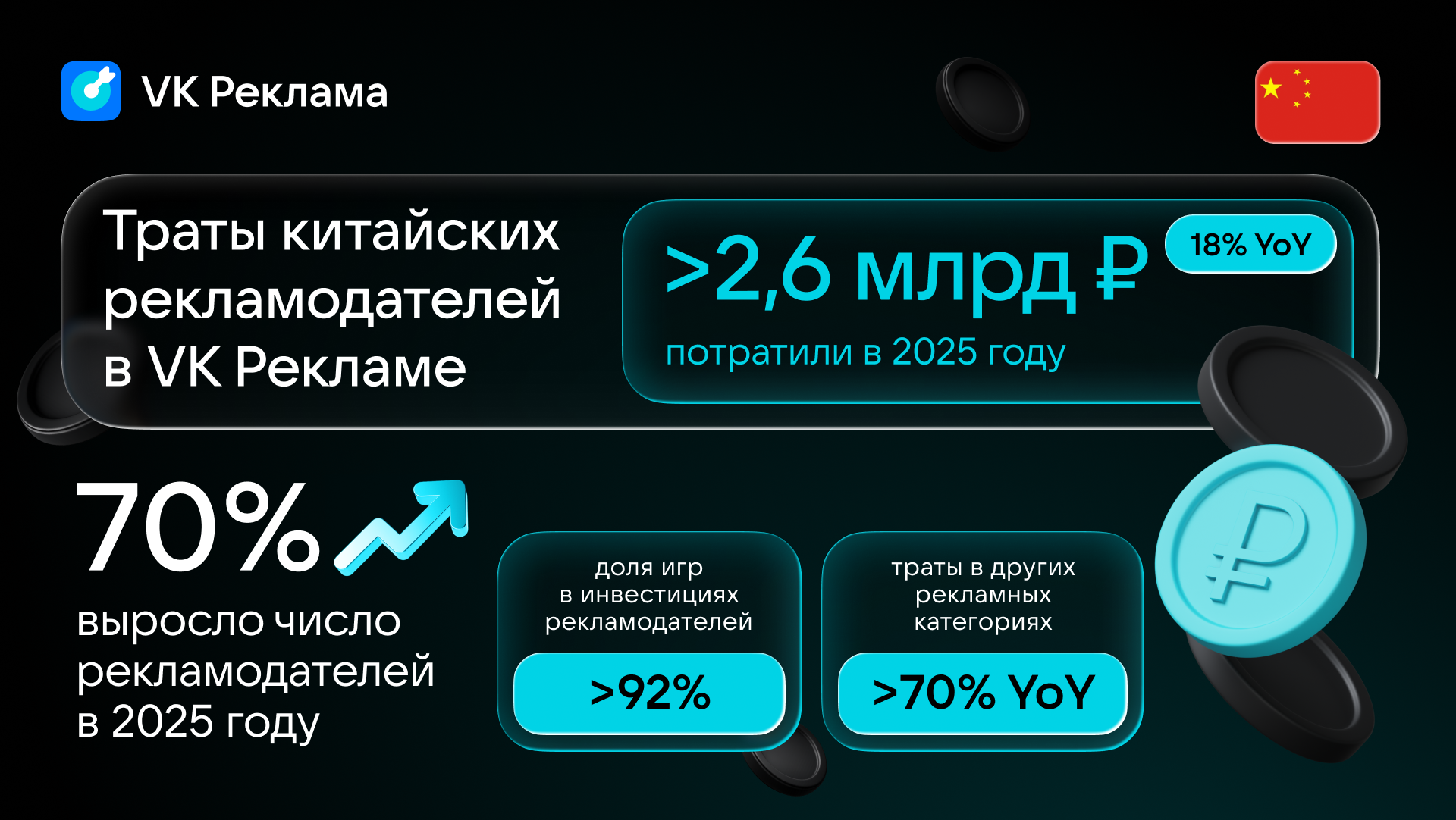 Инвестиции китайских рекламодателей в продвижение в VK превысили 2,6 млрд рублей в 2025 году